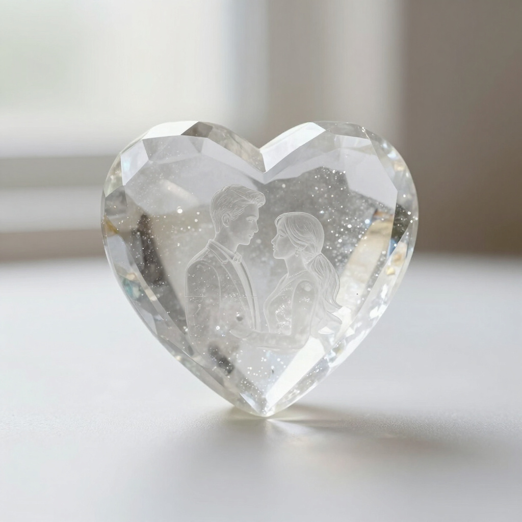 Exquisite heart-shaped crystals laser-etched with your favorite portraits. A timeless display of love, clarity, and precision.